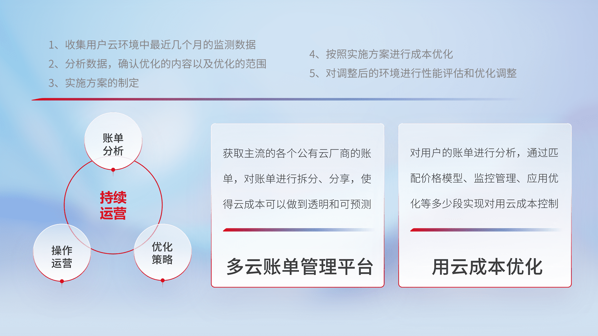 运用智能化工具分析云资源,,,,提供日常费用可视化工具,,,自动账单拆分,,成本优化云上费用,,,降本增效。。。